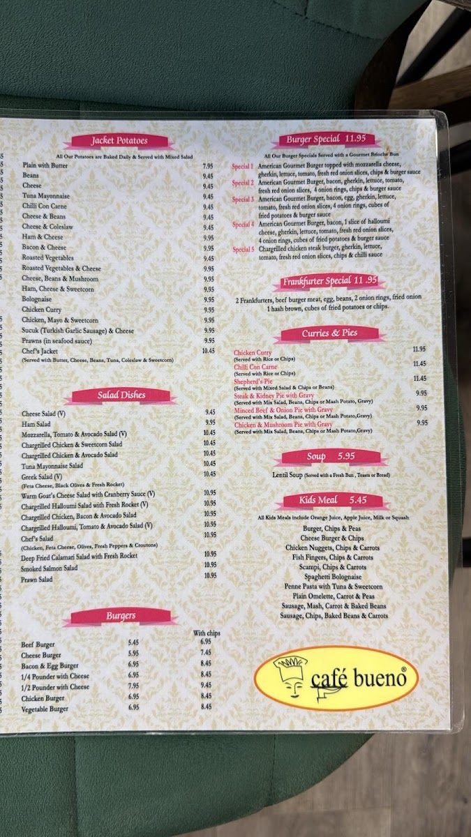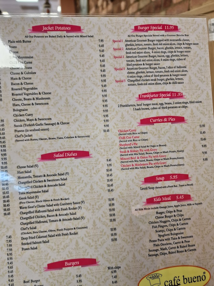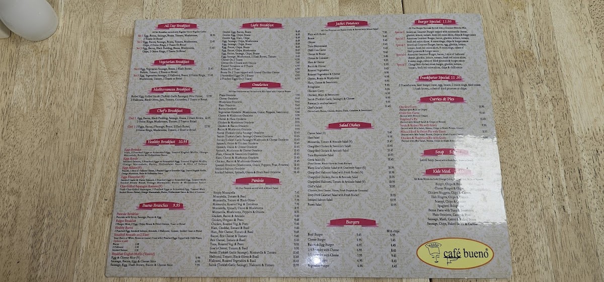 At Cafe Bueno, we boast a diverse menu that truly has something for everyone. From our hearty English Breakfast Set 1 and sizzling Mix Grill, to our refreshing Fresh Orange Juice and comforting Sunday Roast, each dish is crafted with care and bursting with flavor. Don't miss out on our signature specialties like the creamy Omelette, rich Cappuccino, crispy Fish and Chips, and indulgent Belgian Waffle. Whether you're craving a classic like Pasta or exploring new flavors with our Shawarma or Hummus, our menu is sure to satisfy every palate. Come in and try our delicious Cheese Burger and Fries, fluffy Scrambled Eggs, or our refreshing Special Iced Coffee Bueno. Vegan or vegetarian? We've got you covered with options like the wholesome Set 5 Vegetarian Breakfast. So why not treat yourself to a meal at Cafe Bueno today? We can't wait to serve you!